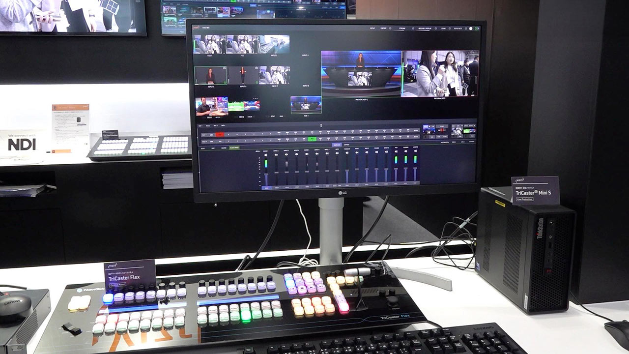 First, there’s the top-of-the-line TriCaster Vizion, the successor to the TriCaster 2 Elite. What surprised me was the use of HP’s tower or 1U rack-mount chassis for the hardware. The transition from a dedicated chassis to more versatile vendor hardware seemed like a logical evolution in terms of maintainability and reliability. In addition to expanding the number of inputs from 36 to 44, the model also comes equipped with practical new features such as AI-based voice separation “Neural Voice Isolation” and viewpoint correction. Another attractive feature is the standard availability of HTML5-based graphics “Viz Flowics,” which broadens the scope of production.