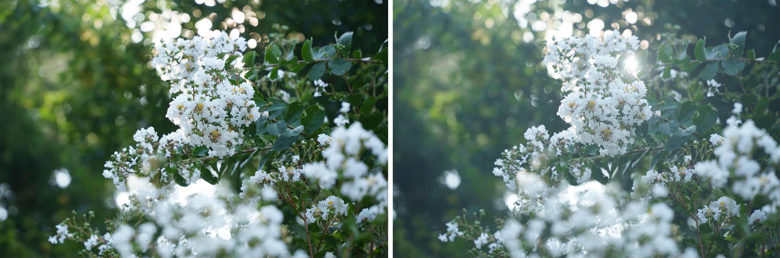 Lens flare, which reduces image quality, is generally considered to be better to avoid, but recently, more and more people are enjoying the flare seen in old lenses as an expression of expression. When shooting in backlight with White Mist, a flare that softly diffuses the light appears, just like an old lens, making the backlit atmosphere even more dramatic.