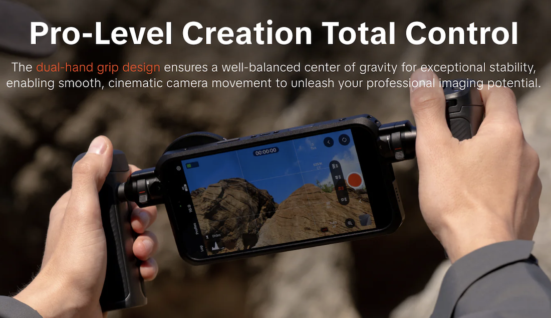 The dual handgrip structure balances the center of gravity, ensuring a stable hold even during long takes. It supports smooth camerawork even during handheld shooting. Furthermore, by connecting the Bluetooth remote module to the PGYTECH PhotoVideo Creative App, manual operations such as ISO, shutter speed, and focus can be performed intuitively at hand.
